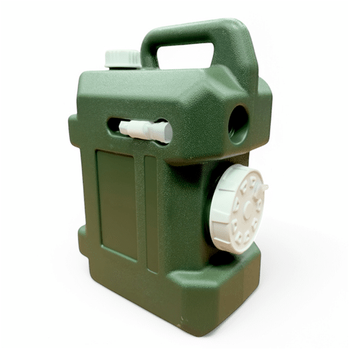 Made from durable, food-safe plastic, this container is designed for long-term water storage without introducing harmful chemicals. The rugged design is inspired by military field containers and built to withstand repeated use in demanding environments.