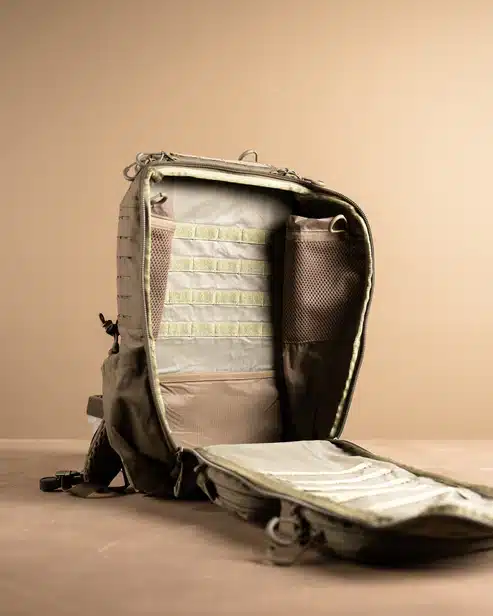 On the pack’s exterior, you’ll find two zippered organizational pockets. The top pocket is perfect for grab-and-go essentials, and the bottom has padding for NODs or hearing protection.