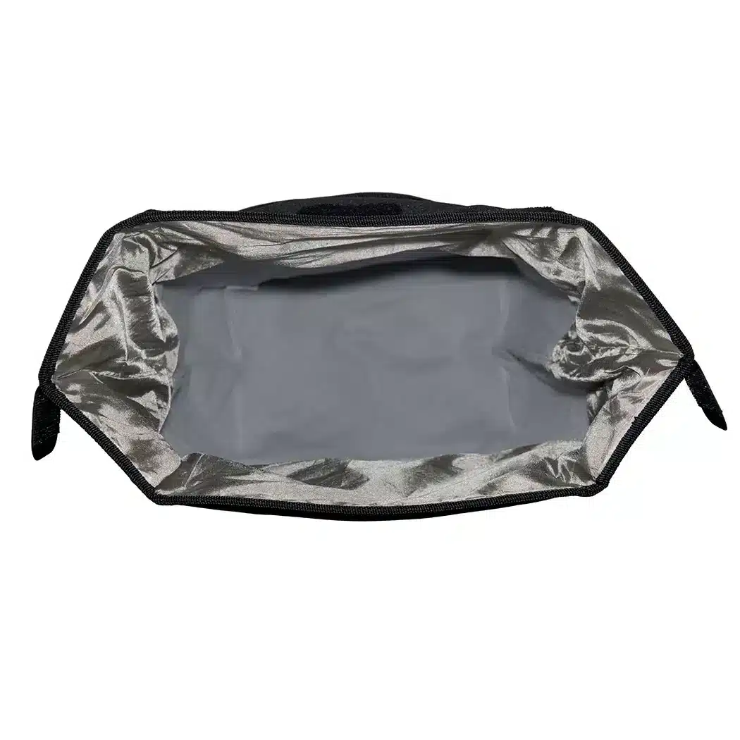 The large faraday bag is a general-purpose Faraday bag in a soft box shaped form. Ideal for protecting your privacy from location tracking and your electronic equipment from damage due to solar flare, electrostatic discharge, or even an electromagnetic pulse (EMP), by blocking incoming and outgoing EMF signals from your cell phones, tablets and other mobile devices between 200 MHz and 40 GHz, including GPS, Cell Phone (4G/5G), WiFi and Bluetooth.
