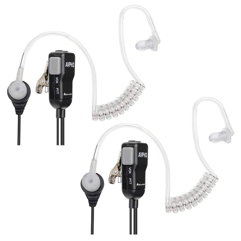 The Midland AVPH3 Surveillance Headsets with PTT offer a discreet, reliable communication option for all Midland handheld GMRS and FRS radios.