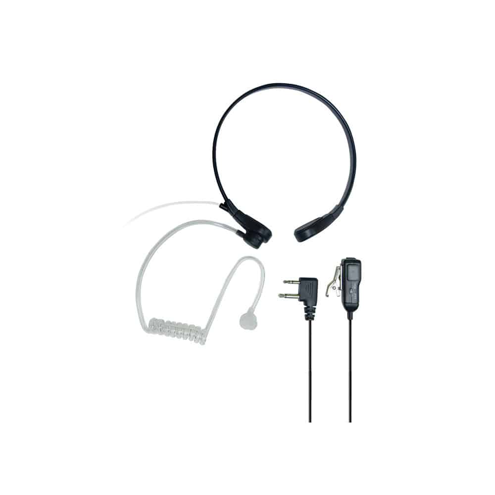The Midland AVPH8 Acoustic Throat Mic Headset with VOX/PTT features a clear surveillance style earpiece and works via throat vibration. Will not transmit background noise.