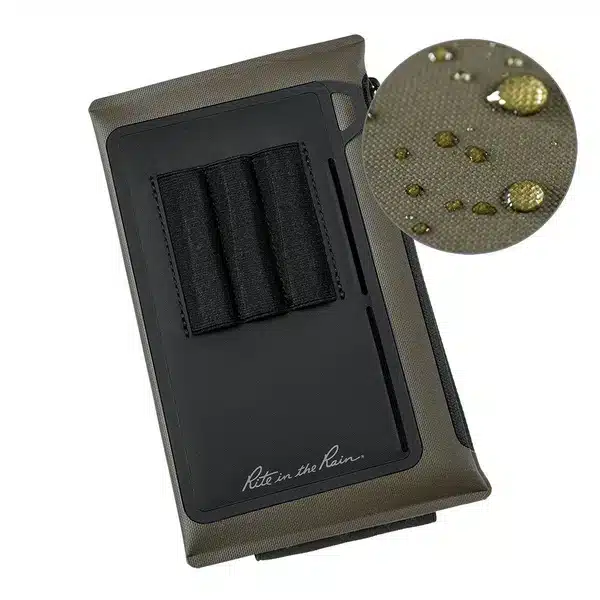 The Rite in the Rain® Monsoon Dirtbag Pouch is an ideal waterproof gear bag. Everything from the rugged TPU material to the welded seams and water resistant zipper are constructed to protect your gear. Three writing instrument slots, a large storage pocket, two card slots and an integrated retention loop combine to provide serious organization in any environment. The storage pocket has ample room for phone, charger and other loose accessories. The fully adjustable (and removable) hook and loop strap can be used to secure 4.75″x7.5″ or 6.75″x8.75″ bound book. The retention loop can be D-ringed or dummy corded to your gear.