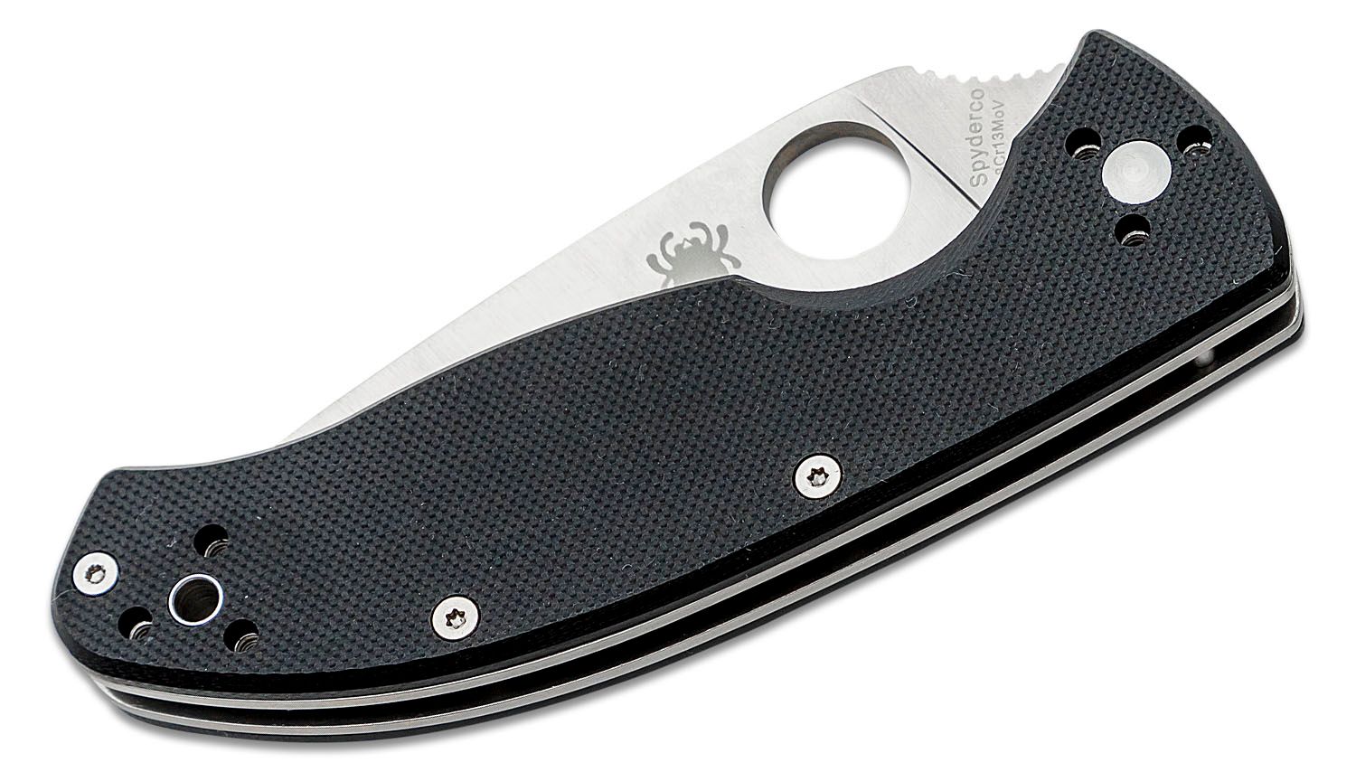 The mid-sized Spyderco Tenacious has a G-10 laminate handle, milled with prolonged fatigue-free cutting in mind. Tucked inside are skeletonized steel liners increasing the handles rigidity and strength without adding non-functioning weight or bulky thickness.