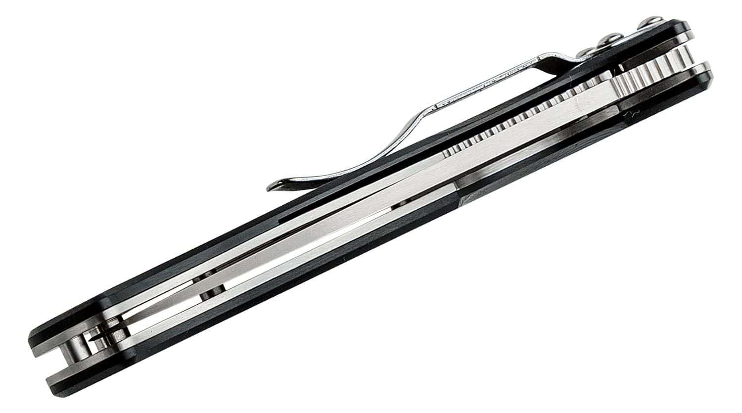 The G-10 handle’s full, skeletonized stainless steel liners are the heart of its sturdy LinerLock mechanism and the foundation for non-slip, textured scales. A four-position pocket clip provides the option of tip-up or tip-down carry on both sides of the body and straddles a lined lanyard hole that allows the easy attachment of fobs and lanyards.
