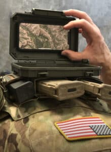 The DarkVault 2.0 Critical Gear Case is purpose-built for smartphone use in austere environments. Attach the DarkVault 2.0 to plate-carriers or chest rigs and you can quickly dock and use your phone for navigation, ballistics info, ad-hoc mesh comms, or any other use. Built to work with normal phone cases, you no longer need to run a bulky, conspicuous case just to have a tactical mounting solution.
