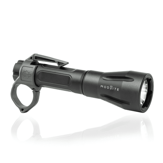 The THYRM SwitchBack HOG Flashlight Ring enhances your Modlite HOG flashlight, optimizing ergonomics for searching and shooting.